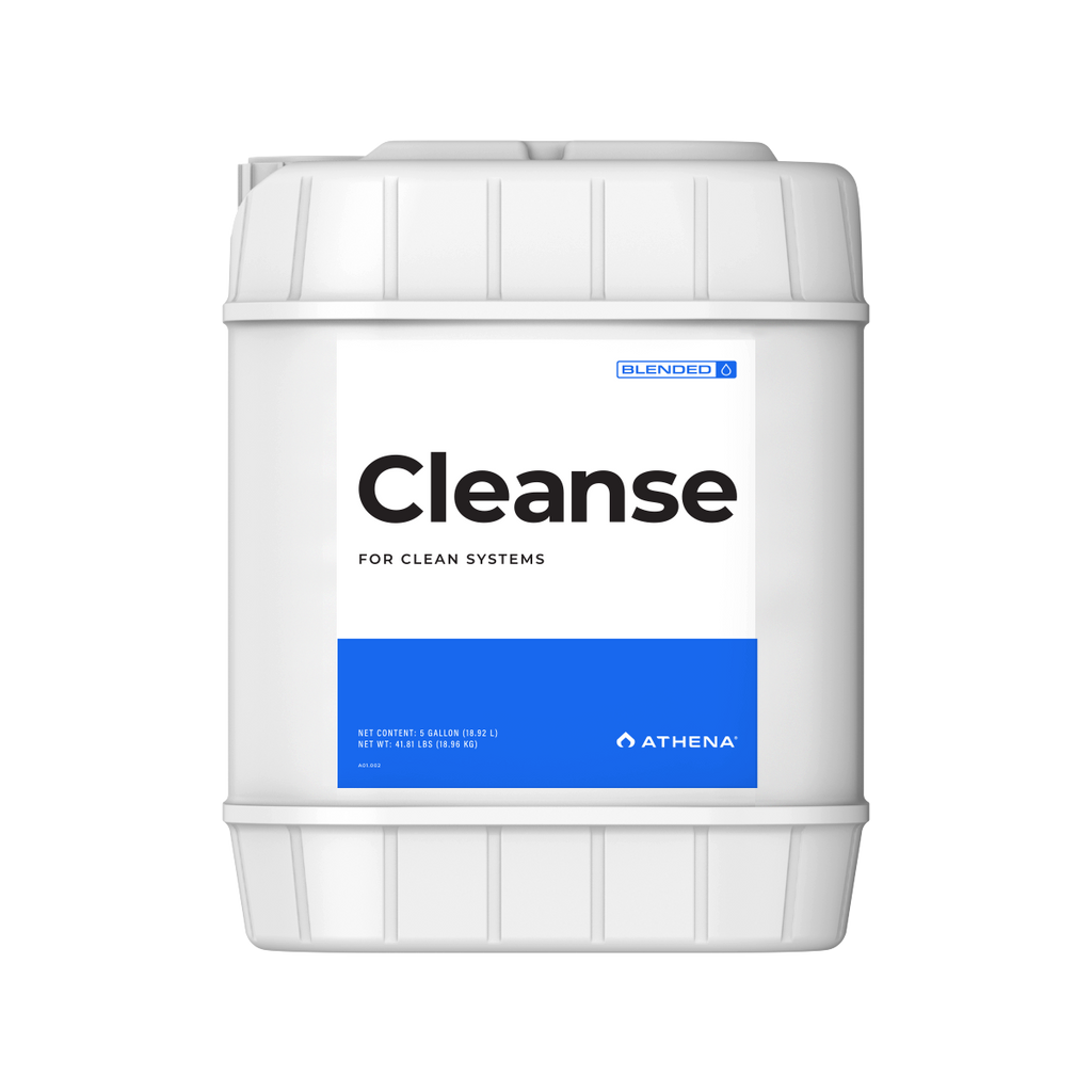 Use Athena Cleanse at a rate of 5-10 mL per gallon of water during the final flush stage to help reduce residual mineral buildup in the growing media.