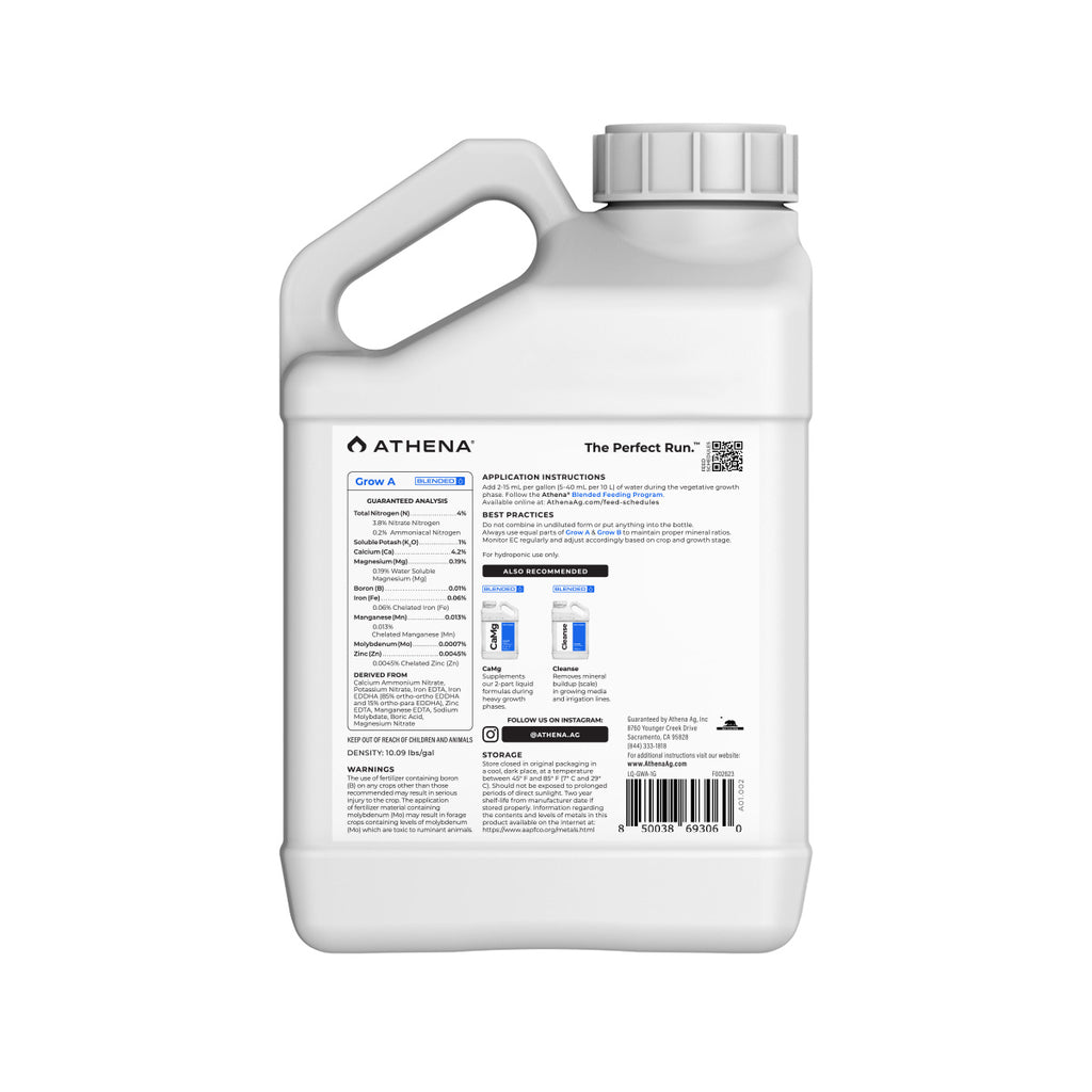 Add 2-15 mL of Athena Grow A per gallon of water during the vegetative growth phase.