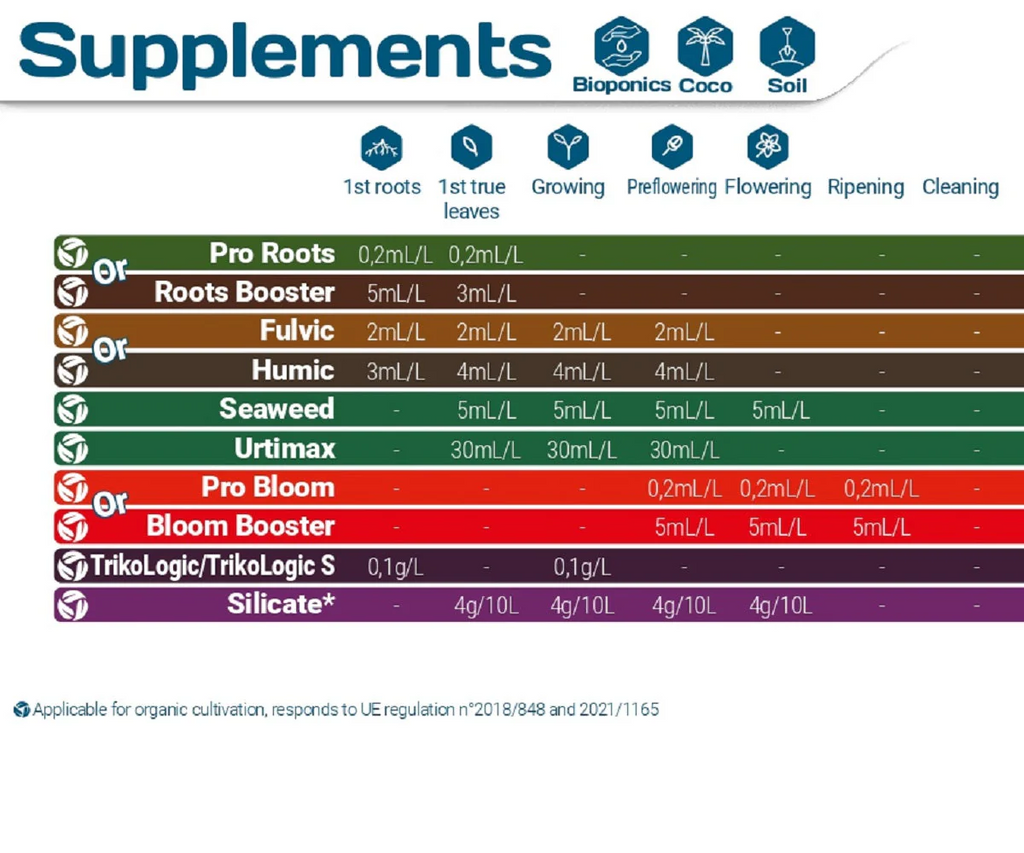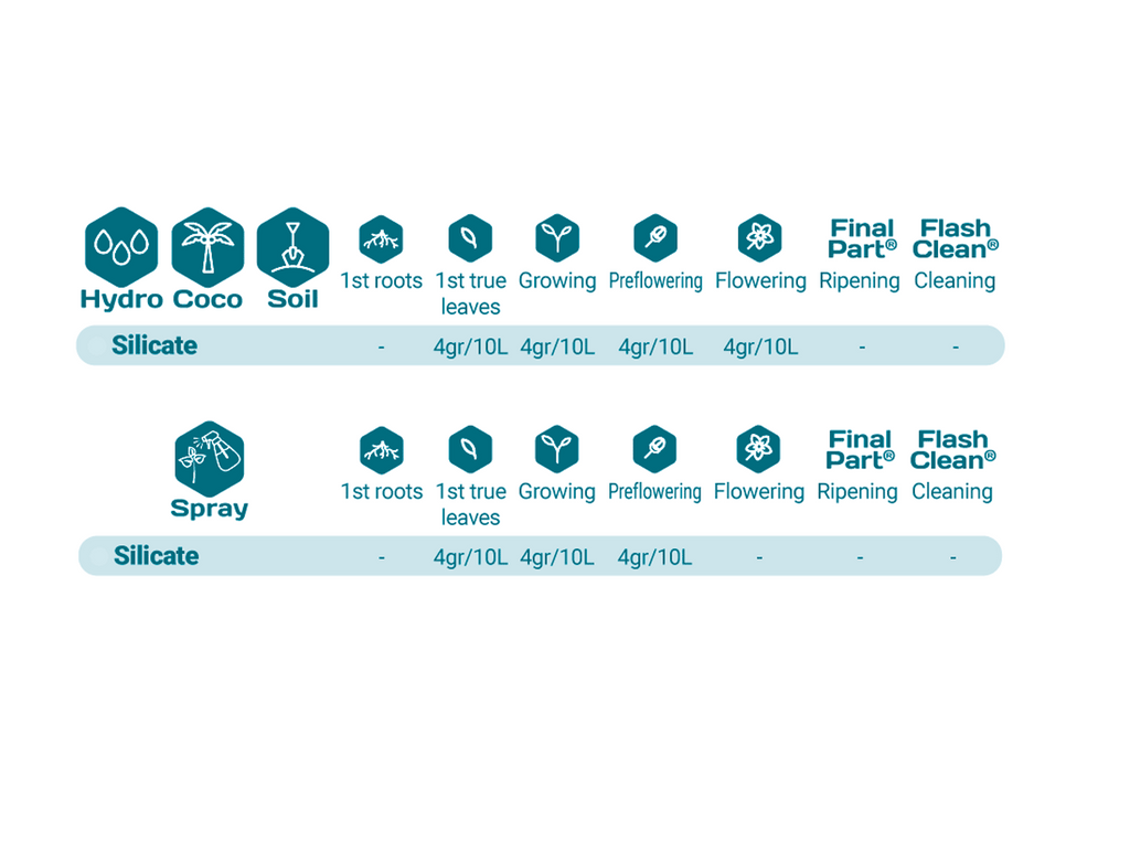 Silicate is an essential element for higher plants, especially when growing with water as a substrate. New pH neutral Silicate contains ancient deposits of biologically transformed organic matter, plus naturally formed silicic acid clay.